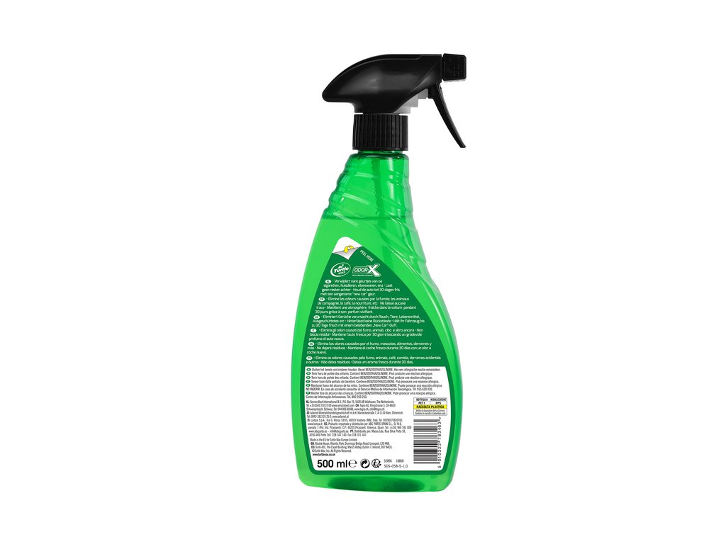 Met Turtle Wax Odor-X ben je verzekerd van een fris ruikend auto-interieur, vrij van onaangename geurtjes zoals sigarettenrook, huisdiergeuren en voedselgeuren. Deze krachtige formule is effectief en laat geen resten achter, en zorgt ervoor dat je auto tot wel 30 dagen lang heerlijk fris ruikt met een aangename New Car-geur.