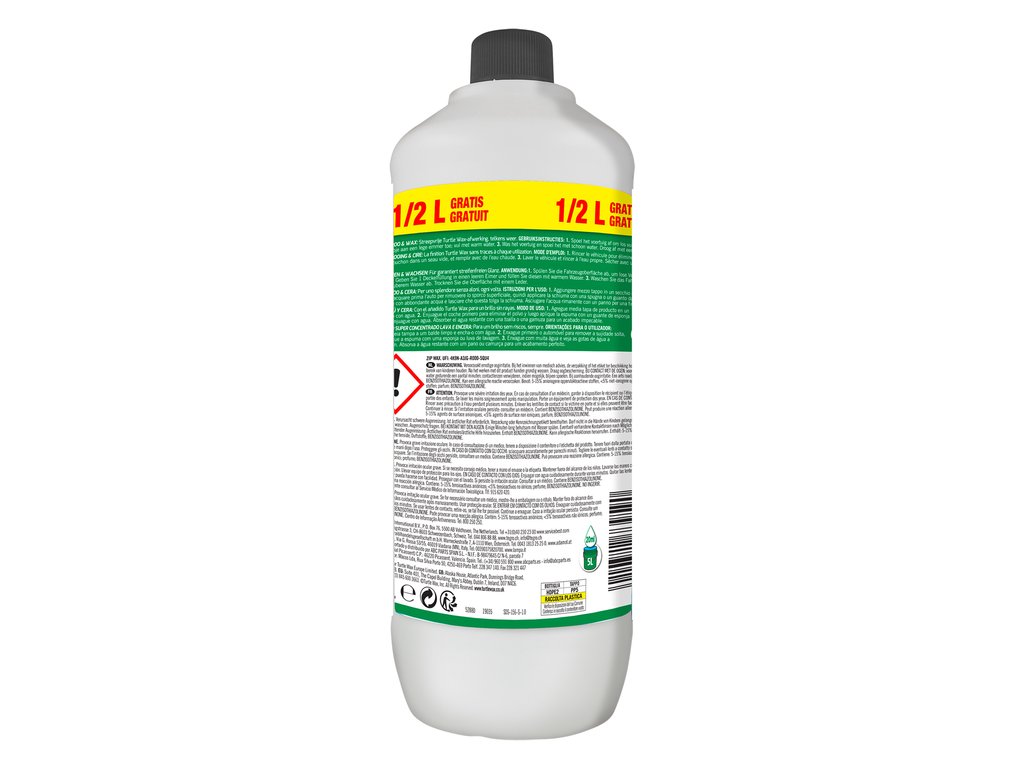 Met een royale inhoud van 1,5 liter heb je genoeg product om talloze wasbeurten uit te voeren voordat je aan een nieuwe fles moet beginnen. Deze autoshampoo is de perfecte keuze voor wie op zoek is naar een product dat efficiënt reinigt, glans herstelt en tegelijkertijd een beschermende laag aanbrengt, dit alles in één handige fles. Het is de sleutel tot het behouden van de schoonheid en glans van je auto, keer op keer.
